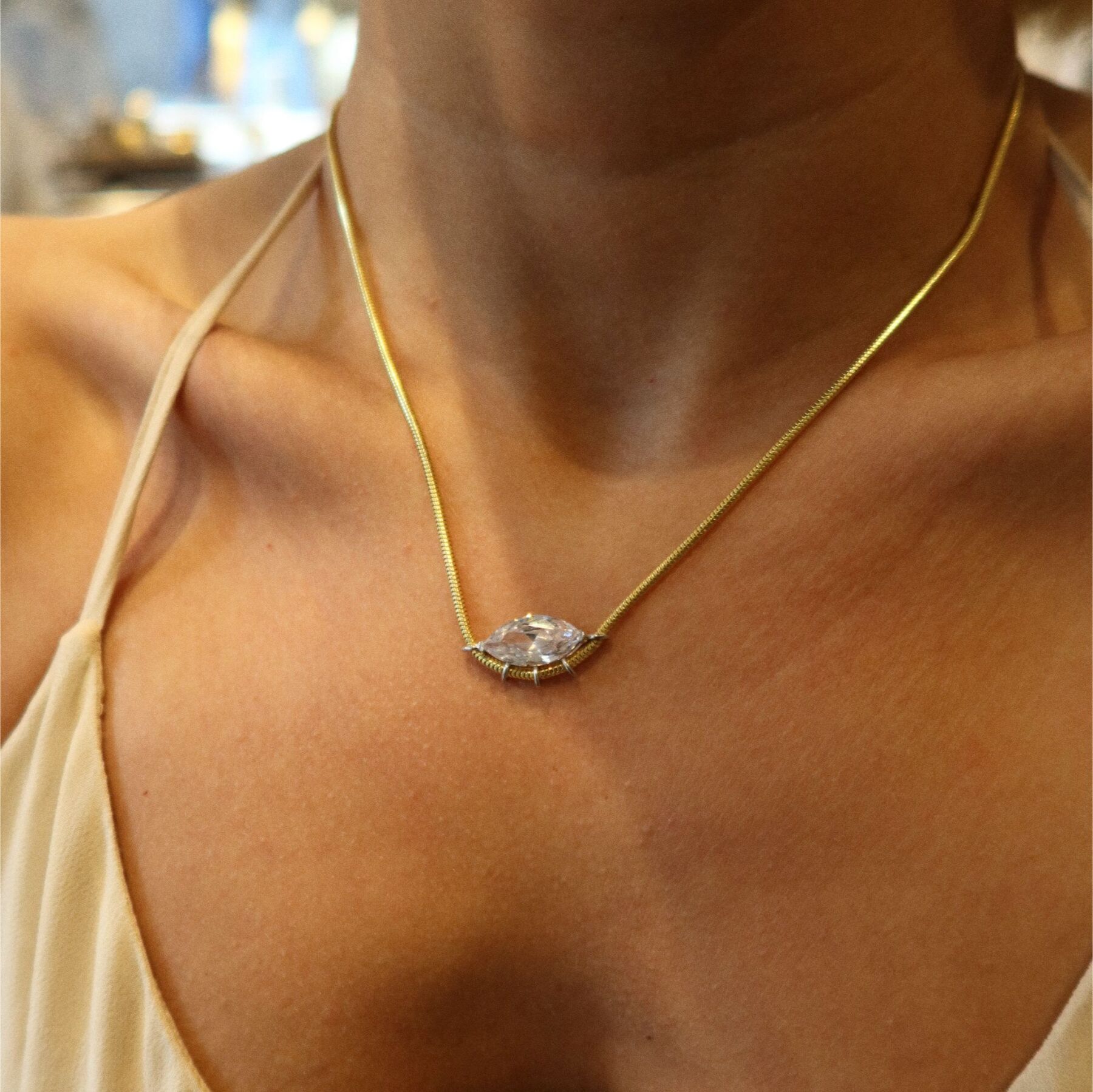 Beyaz Taşlı Baget Choker | 925 Gümüş