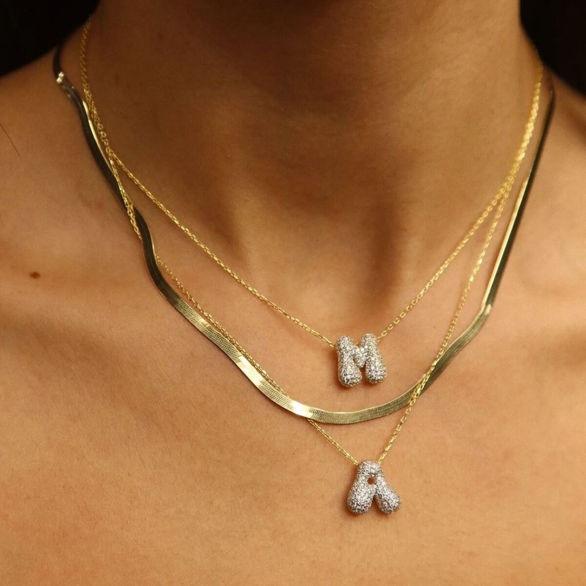 Bombeli Taşlı Harf Kolye | 925 Gümüş