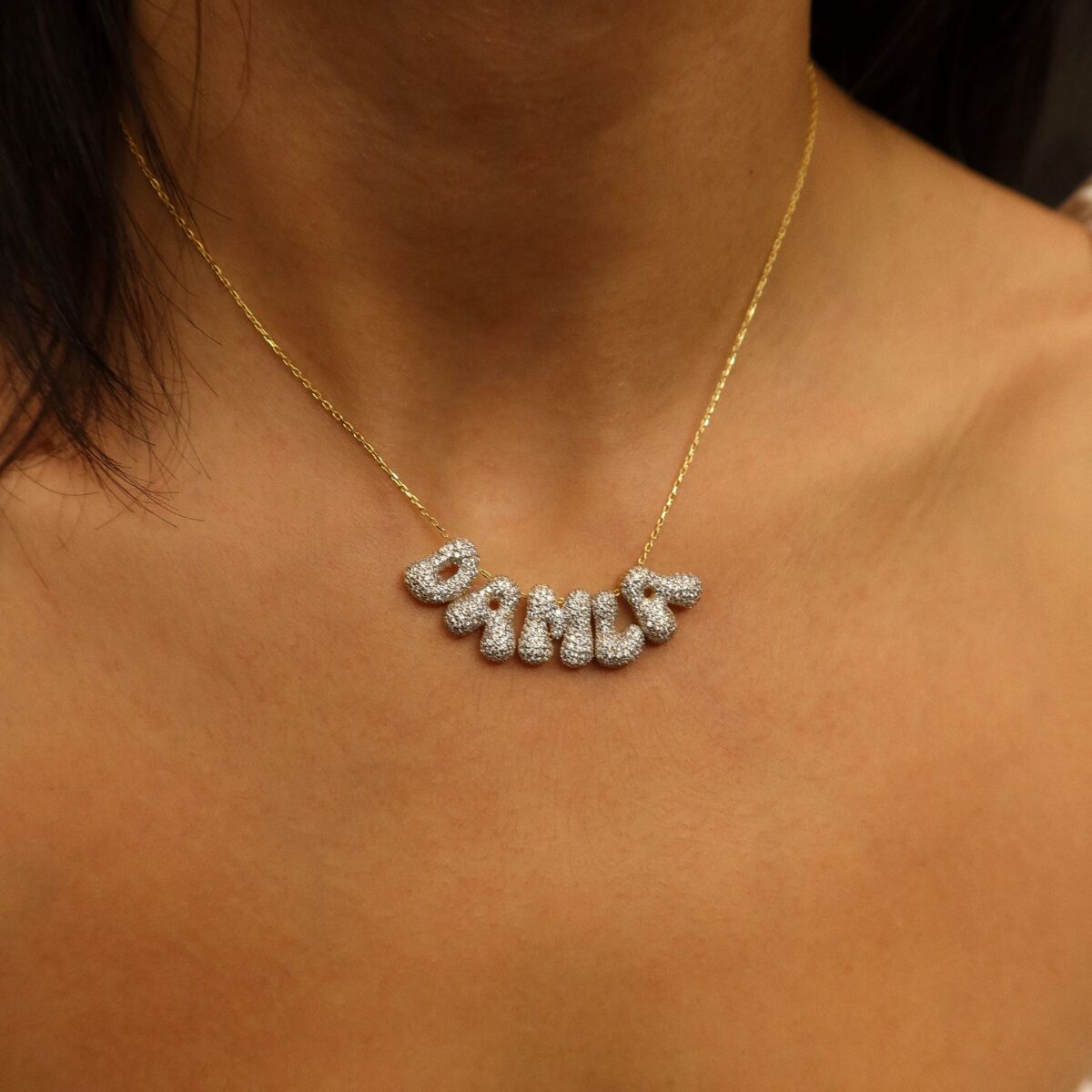 Bombeli Taşlı İsim Kolye | 925 Gümüş