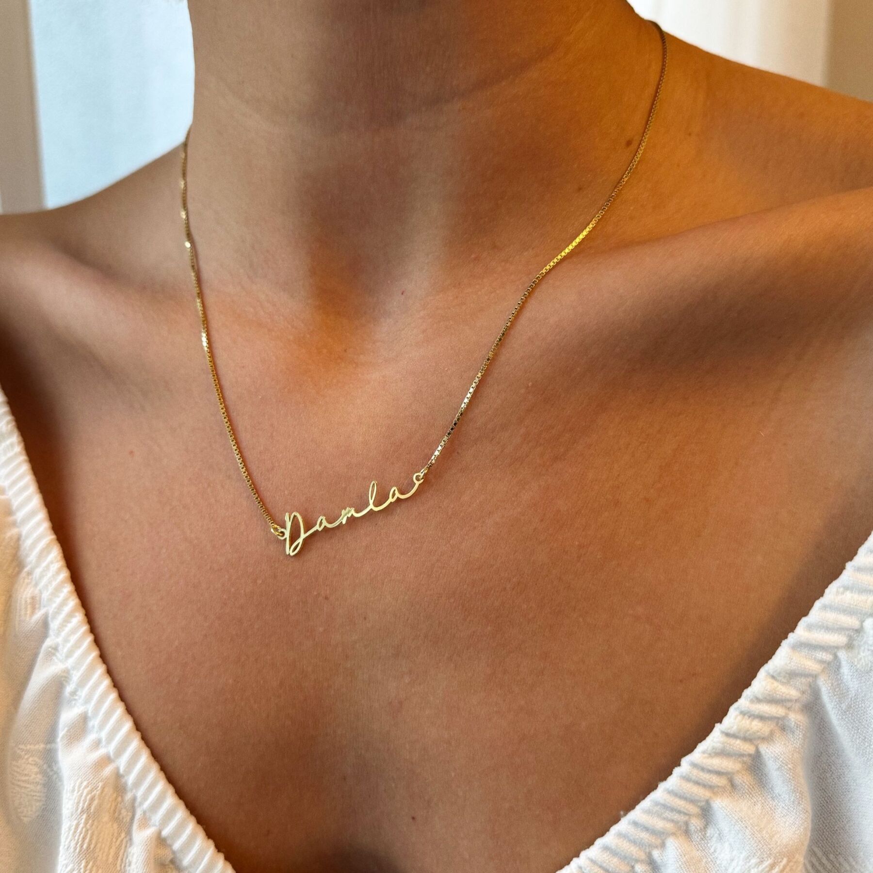 Boru Zincirli El Yazısı İsim Kolye | 925 Gümüş
