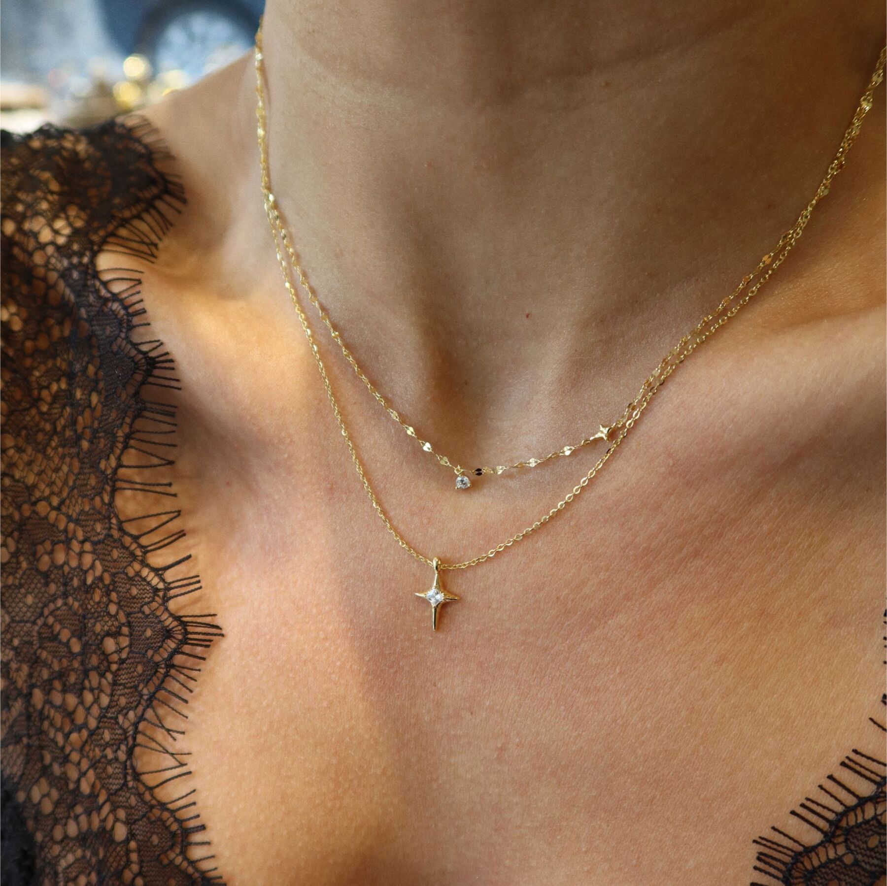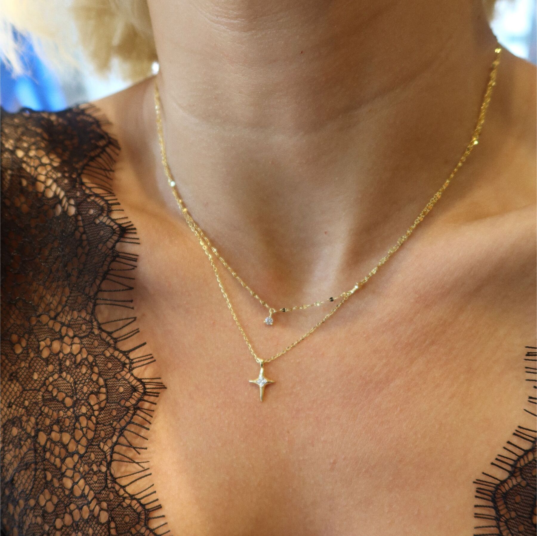 Çift Zincirli Kutup Yıldızı Kolye | 925 Gümüş