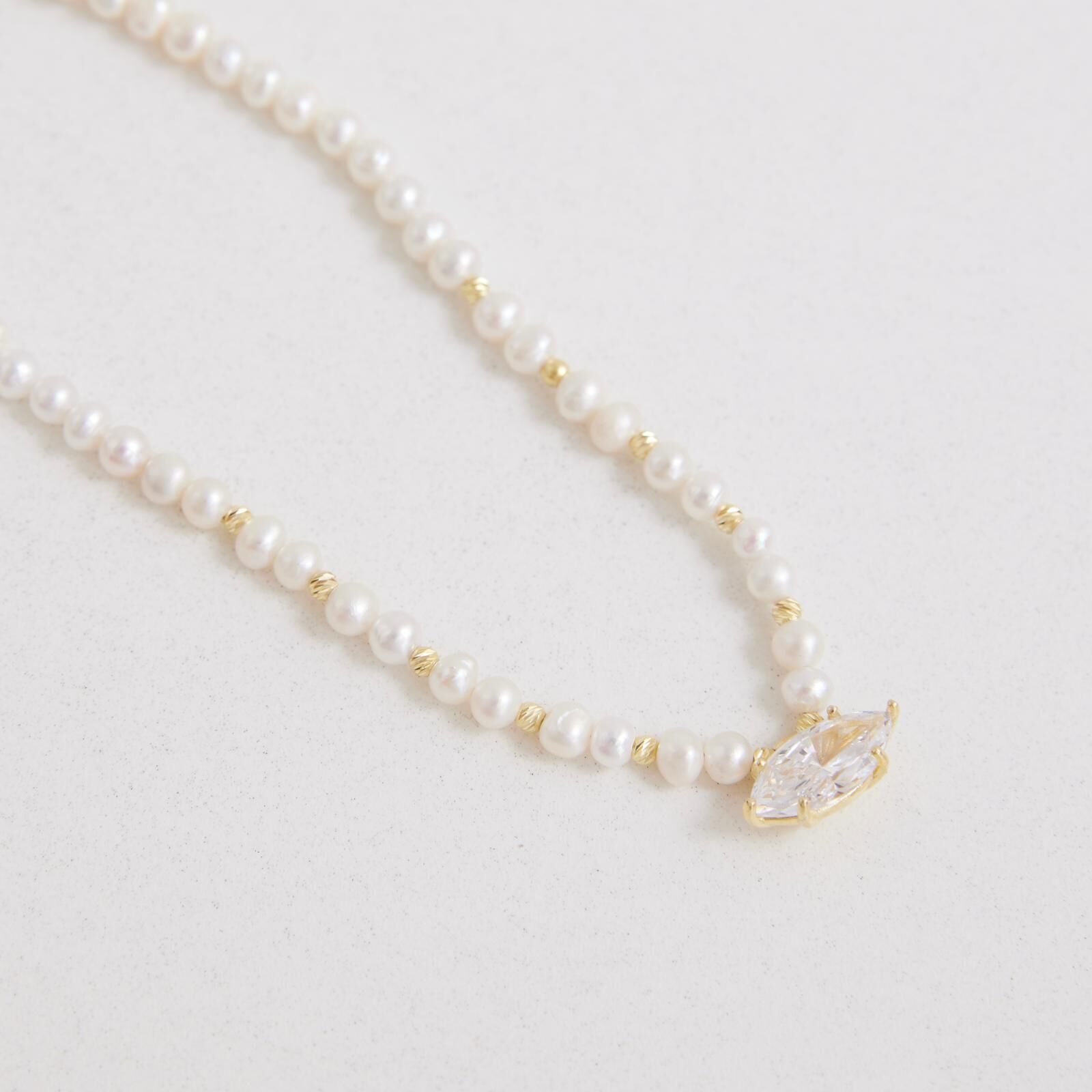 İncili Badem Taşlı Kolye | 925 Gümüş