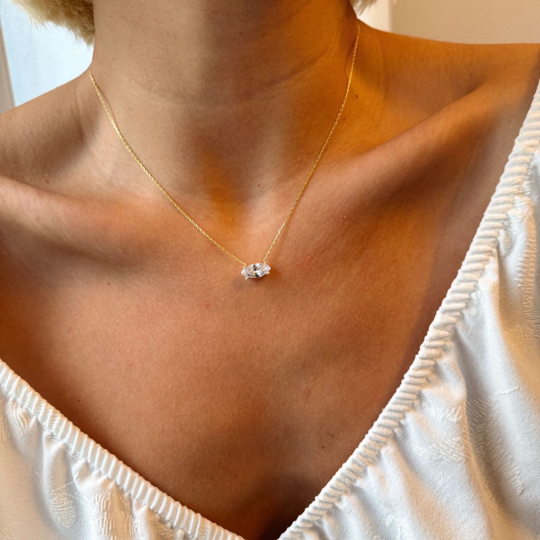 Mozanit Badem Taşlı Kolye | 925 Gümüş