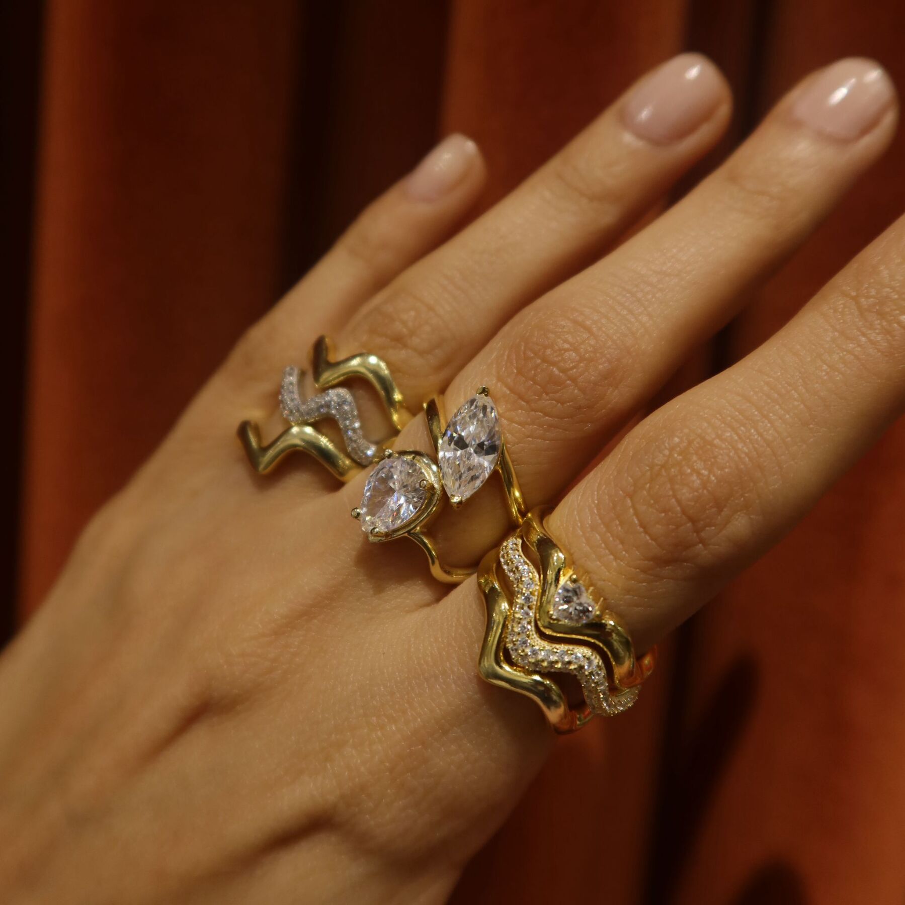 Taşlı Kıvrımlı Yüzük Seti | 925 Gümüş