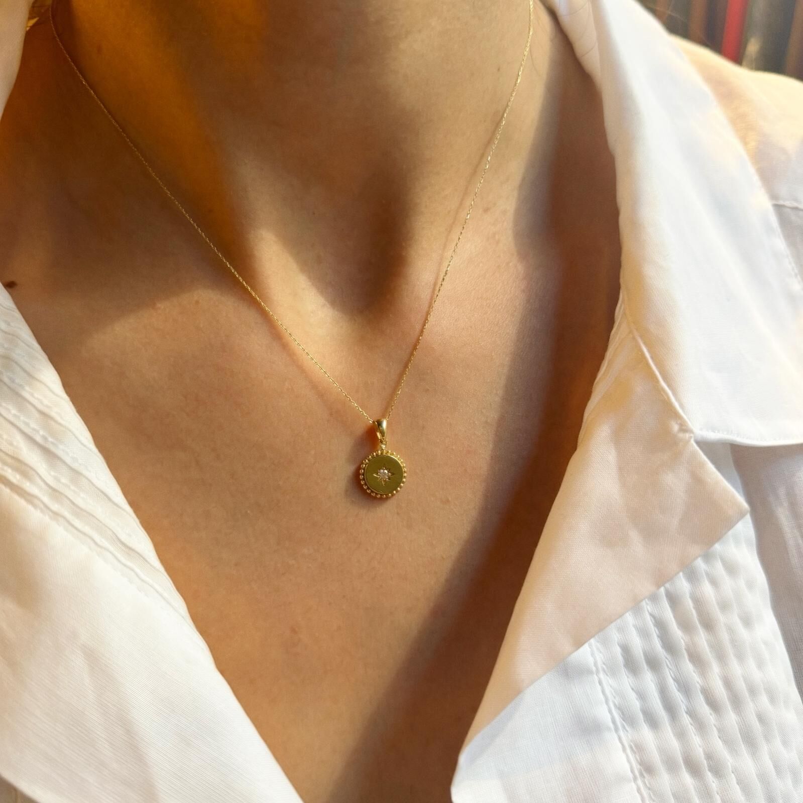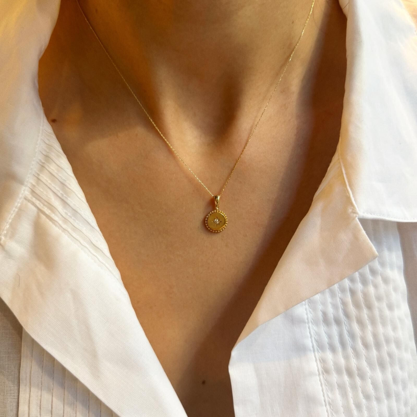 Taşlı Plaka Kutup Yıldızı Kolye | 14 Ayar Altın