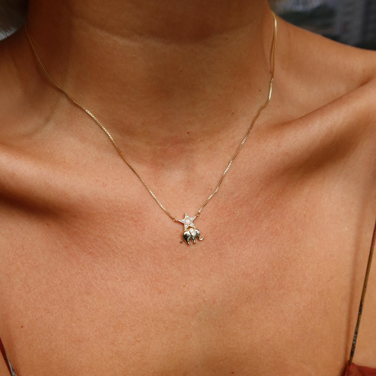 Taşlı Yıldız ve Fil Figürlü Kolye | 925 Gümüş