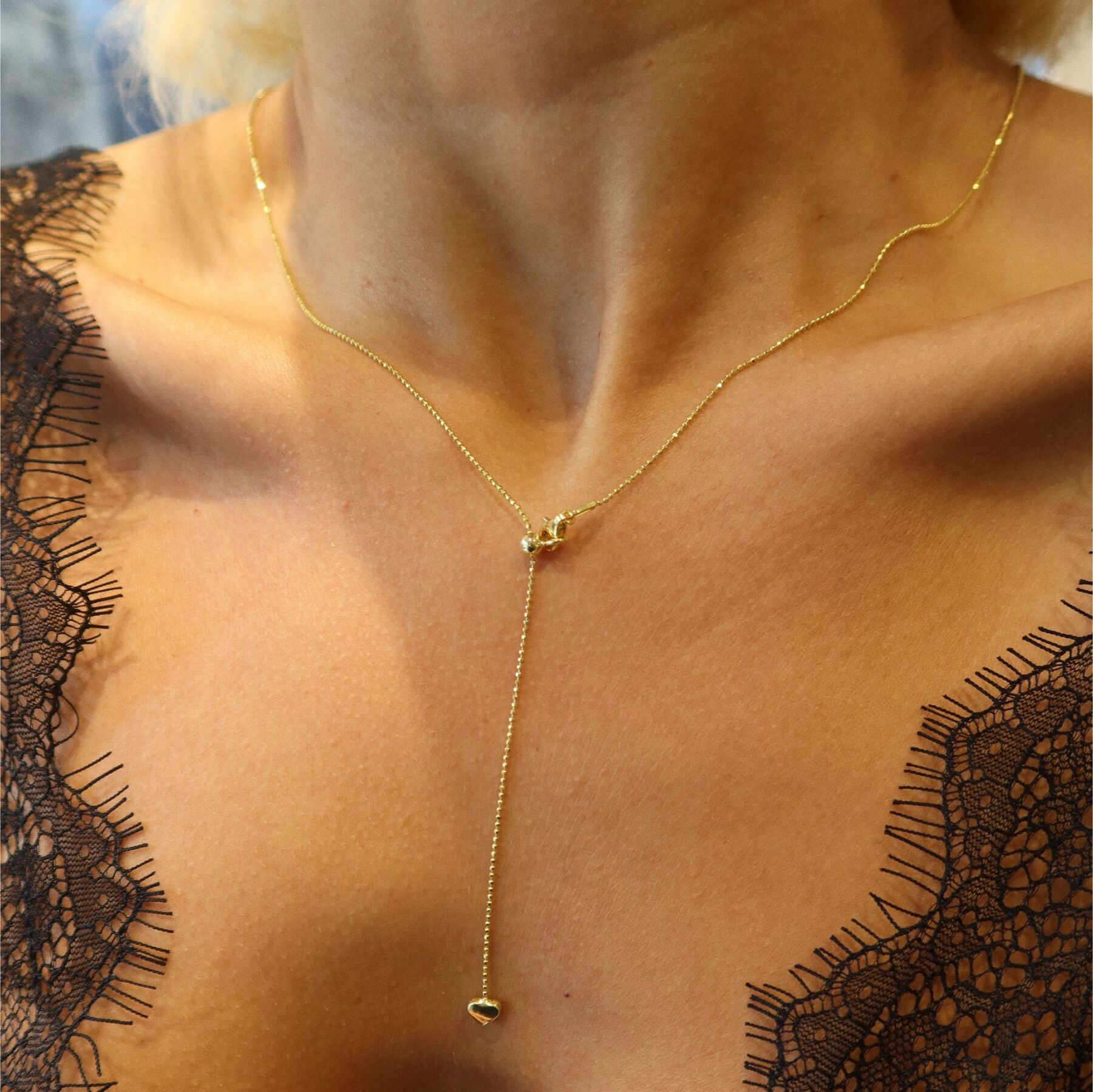 Top Zincirli Asansörlü Kalp Kolye | 925 Gümüş