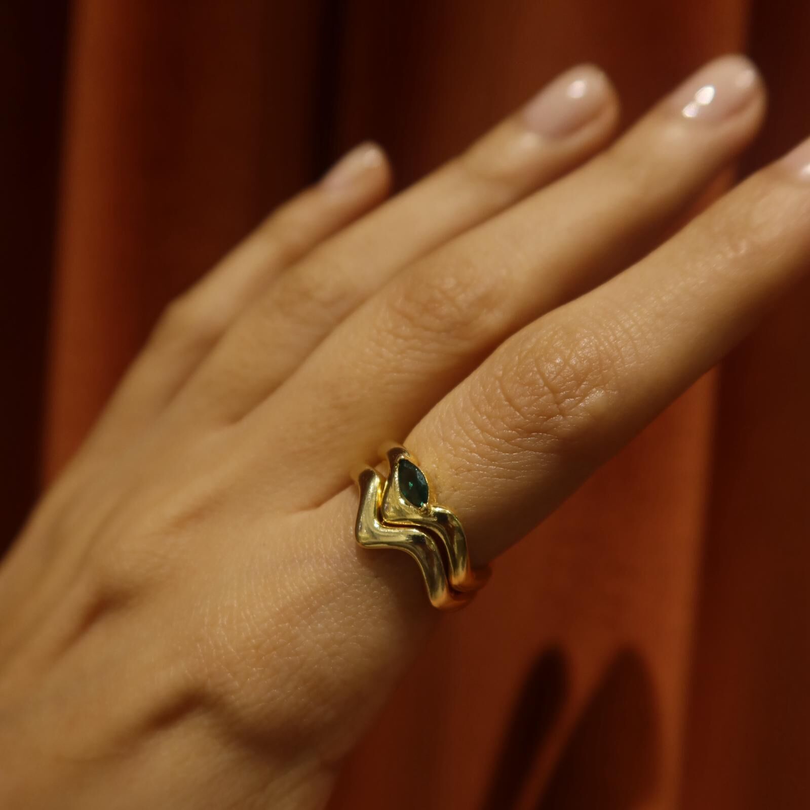 Yeşil Badem Taşlı Kıvrımlı Yüzük | 925 Gümüş