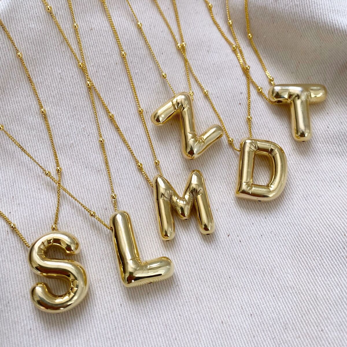 Bombeli Çizgili Harf Kolye | 925 Gümüş