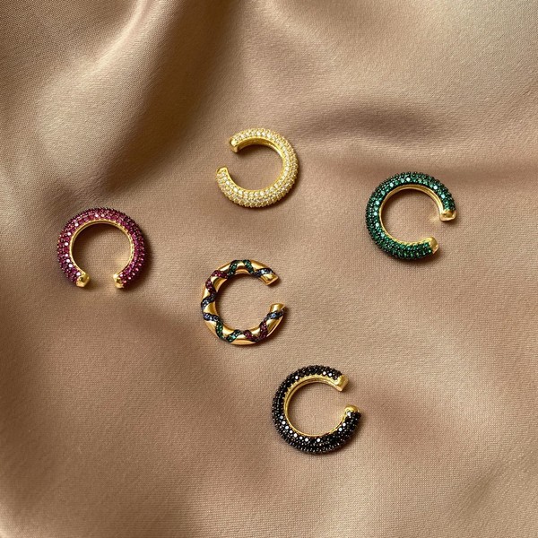 Renkli Taşlı Ear Cuff | 925 Gümüş